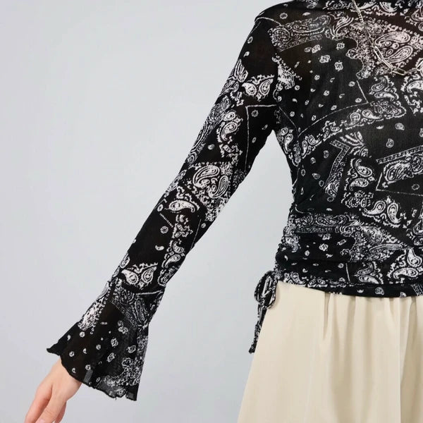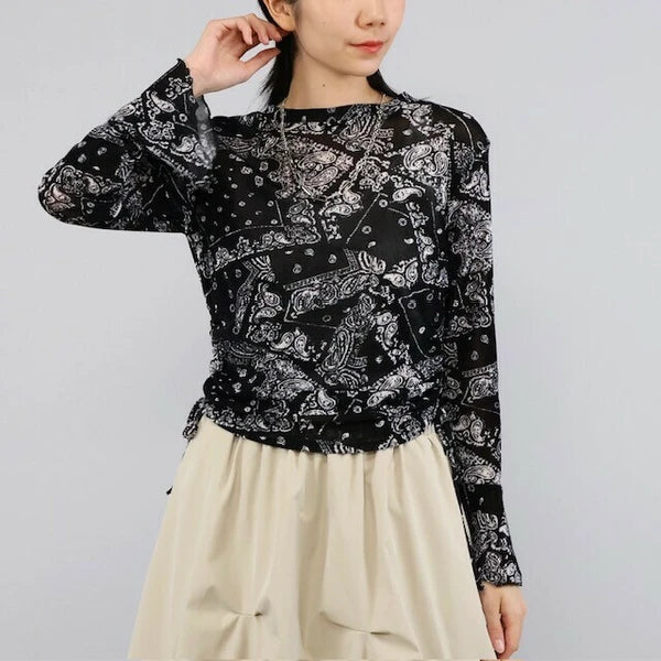 個性的なプリントデザインが目を惹く長袖プルオーバー